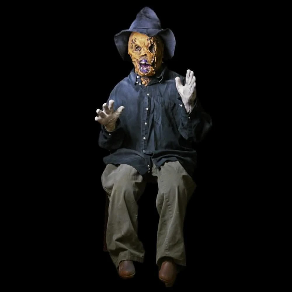 Scary Scarecrow is a poseable prop made of latex and foam. It has a metal wire inside so that it can be posed. It is not free standing. Scarecrow clothing may vary.
